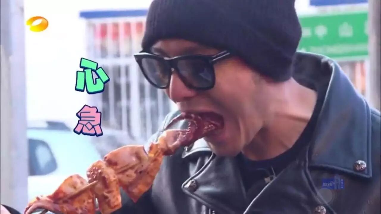 酷炫狂拽的黄教主就连吃东西的时候,画风也是如此酷炫狂拽,你们感受一下:
