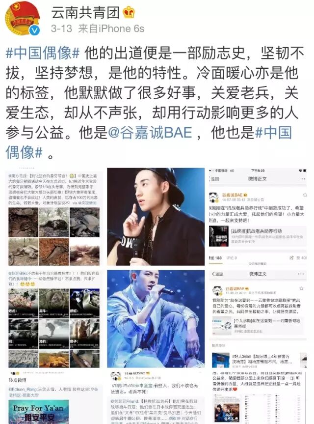 昆明小伙撞脸陈冠希 王力宏 吴亦凡,女朋友却是…… 港台男星 2016-03-24 09:05:14 198 创作不易,用心坚持,欢迎请BaGua喝几杯爱心咖啡!打赏并支持本文 打赏并删除本文 据说,最近如果你没有关注这枚“昆明最夯小鲜肉”,打开微博和朋友圈的状态是这样的。什么都看不懂为什么都在说他和陈冠希?他和吴亦凡?他和王力宏?天啦~小编自动脑补奇怪复杂关系图!纳尼?!连根正苗红的云南共青团也被他撩得七荤八素!没错,一看就是正经艺人!!!感受一下右下角,他的RAP表演,已经播放了5850.6万次,近3万评论,大家看到这个帖子的时候,相信数字肯定又增加了一大截了。事实上!在开扒之前,小编对这些失控的人群都是冷漠脸!看了他的种种之后小编成了这样:简单说就是:这位号称“昆明花仙”的小鲜肉实在是太帅啦!而且!从外表到内在都太棒了! 颜值和励志兼得的那种!还是先上图给大家瞅一眼~~就!一!眼!别!多!看!像冠希哥?!像吴亦凡?!像文章?!哈哈哈!怎么感觉小编在黑他?!其实!他就是他自己!真是real 帅!侧脸来一张~正面再来一张~说了辣么多!终于等来了八卦时间!!!首先,先介绍一下“小鲜肉”的大概情况~他微博名叫@谷嘉诚BAE,被粉丝们成为“老谷”“谷毛毛”“花仙”,土生土长昆明人,92年出生,除了颜值爆表,能歌善舞(善舞这点…额,看了视频你就知道),人家还是学霸!从云南名校——师大附中毕业,在大学期间过了英语专八,毕业后被美国俄勒冈大学录取…天啦咯,这难道不就是传说中的“别人家的孩子”?!但是!老谷同学对于如此顺当的人生旅途表示“我不愿意啊”~于是,“想换条路走走”的他登上《燃烧吧!少年》舞台。What?!你问这是个啥节目?额…那小编插播几句。说起这个《《燃烧吧!少年》,大约算是《奔跑吧!兄弟》的弟弟?因为都由浙江卫视这个“妈妈”制作。事情是这样的...有一天,广电总局说真人秀不能再这么“泛滥”下去了!于是,有了这档号称“正能量、励志”的素人选拔节目!其实就是挑选小鲜肉当明星咯~和许多节目一样,小鲜肉被分为两组!由“掌门人”带领他们PK!掌门人风采看这里!!!没错!掌门人分别是春春和舒女神!在节目中,她俩可谓是“一喜一悲”!一个是全程淡定“扯段子”,一个是不堪“重压”频流汗!先看看一心想抢主持人饭碗的冷场段子手——春春。现场回顾:舒淇战队里的“小鲜肉”表演完后,春春主动当起串场主持:“我注意到刚才舒淇那组,为什么只有一顶帽子啊?”本想就此引出下一组少年,无奈华少没有接到这个包袱。心有遗憾的春春硬是让华少陪她“重演”了一遍。面对如此淡定的掌门,玉米们都忍不住献上膝盖,“春春真的好酷,一副纵览大局的样子~”对!就是她!云淡风轻“李掌门”!与春春淡定形成强烈反差的是女神舒淇,那个错失金马奖仍在坦然微笑面对的女子,竟然因为心疼自己组的选手被BOSS团批评的太惨而屡屡泪洒现场!遭到网友吐槽后不得不强忍泪水!女神到底有多心痛,看看她自己说的话就知道,“我的心还是痛的,是真的痛,不想做这个秀了,因为太残忍了!”对此,小编只想大声说!舒女神!别哭!快到小编怀里来!让我温暖你~~~节目进行到最后,掌门人李宇春和舒淇各自挑选了四枚小鲜肉!也就是!总共八枚小鲜肉被选中!老谷就是被春哥“临幸”了,额,不对,选中了!在90后和00后的世界,他们有多火?为了扒好咱们昆明帅哥,小编敖夜看完了《燃烧吧!少年》发现,这个节目就是选拔高颜值、多才艺、低龄化的小鲜肉!伍嘉成!这位可以去拍牙齿广告的超级无敌大话唠!他在老谷心中的地位,看图片就知道了!吉他少年——白树,在节目中人气也很高~咋看着有点像胡歌呢?日系美男——赵磊!天啦!妖孽!郭子凡,年芳18岁!看起来走的是韩系欧巴风!这位竟然还是未成年!!刚满16岁!扒了这么多小鲜肉,小编觉得自己的脸盲症都犯了!总之!脑海中只飘过一个字!帅!!!扯远了!把目光继续放到老谷身上!作为昆明小花仙,他在节目中表现咋样呢?节目中的他有些羞涩,话不多,但多才多艺,自己原创歌曲《who I am》,显露出十足个性。他还被粉丝戏称为“面瘫boy”,可就是帅啊!移动帅气表情包!酷酷哒帅!忧郁哒帅!萌萌哒帅!节目中的老谷时而霸气侧漏,时而小公举,偶尔卖卖萌,逮到机会还会为队友擦擦眼泪大秀恩爱,不对,是展现兄弟情义!听说扛枪的男孩子最帅呢~(额,怎么有点歧义….)粉色小公举!实力撩妹!老年迪斯科也跳得杠杠的!我就问!这样全能型大写加粗还加下划线的帅哥怎么能不火?反正小编已经搬个小板凳准备在荧幕前流口水了!长得这么帅?有女票了吗?额...有男票了!哈哈!开玩笑的!但是好基友必须有!就是之前提到的伍!嘉!成!两人CP感爆棚!伍嘉成是话唠,谷嘉诚是面瘫,粉丝开玩笑说是“典型的话唠受面瘫攻”!大家还给取了名字——佳偶天成!那么,老谷和小武是怎么走到了一起呢?不对!是为什么关系好呢?粉丝们说啦,两人名字相同!生日又只差了一年一月一天!当然必须在一起啊!事实上,两人的友谊是默默积淀的。老谷属于感情内敛型,总是默默在做,不愿意表达。老谷总是跟着小武练习,作为一个零基础的人,他俩最后的表演总是那么合拍和完美!从节目花絮看出,老谷对小武从来都是言听计从,打不还手骂不还口,因为他知道小武是真心在帮他,虽然他不说,但是从他俩的日常就能看出,老谷对小武是十分宠溺的。其实,据谷妈爆料,老谷小时候像小武一