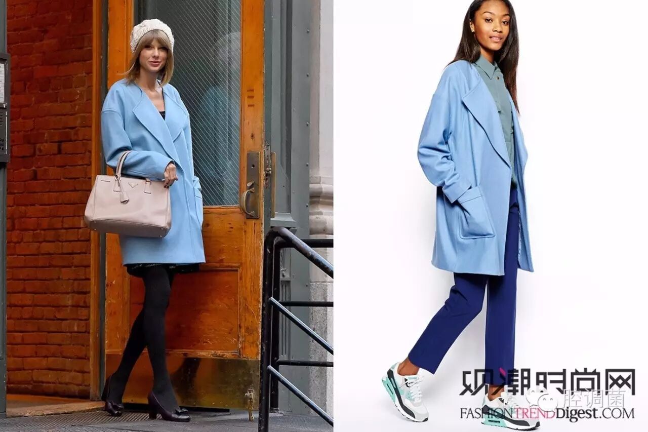 Taylor Swift穿的那件水蓝色大衣,就是来自ASOS,价值91美金,也就是500多人民币。以Taylor Swift的身价,穿这样的大衣真是能算得上“朴素”了。而这件蓝色大衣也很快就在ASOS上被抢购一空。