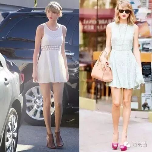 我们能从这张图看出来Taylor Swift是有多爱高腰A字裙,两条裙子款式设计都差不多,却要买两条,还要相似的颜色!换做是选择困难症患者,估计纠结到焦虑了吧~