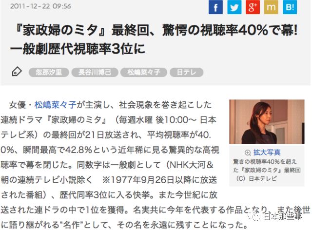 这里提到她推掉的工作,指的是她最有名的作品之一2011年日剧《家政妇三田》的续集。