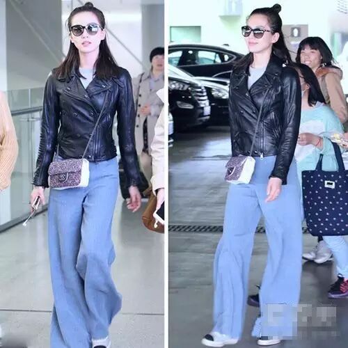 看看刘诗诗街拍照,紧跟潮流,半扎丸子头与帅气皮衣,还有浅蓝色阔腿裤,如此利落爷范儿的造型,刘诗诗穿起来特别好看。小编一直觉得刘诗诗只能走古典气质路线,原来还可以如此帅气。