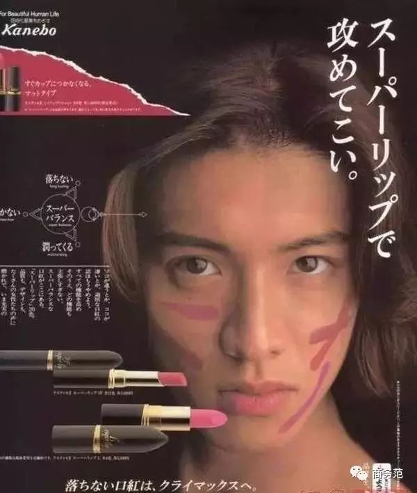 首先就是他红遍大江南北的唇膏广告啦~上面也提过,木村拓哉的嘴唇是很性感的。