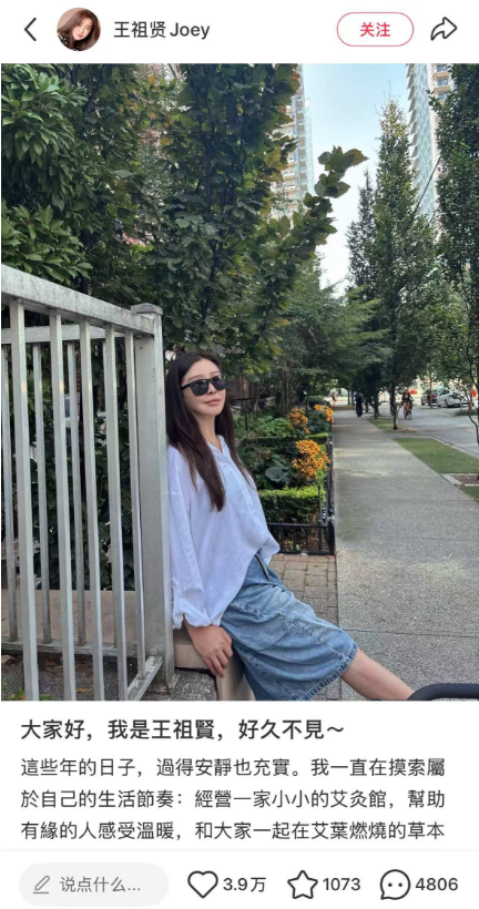 1月31日,演员王祖贤带话题“王祖贤入驻小红书”在平台发文,称自己这些年来经营一家小小的艾灸馆,作为一个生活的分享者来到小红书,分享自己走过的街角、上班的小日常、或是情绪起伏时安顿自己的小方法。