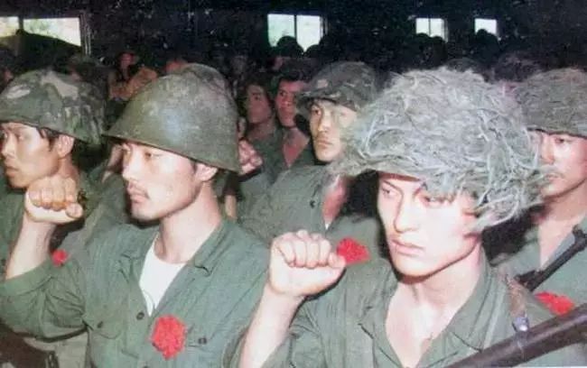 图为我军对越作战某部队的誓师大会。年轻的战士即将走上战场,考虑到在战场上不方便理发以及便于包扎头部伤口等问题,他们清一色的剃了光头。