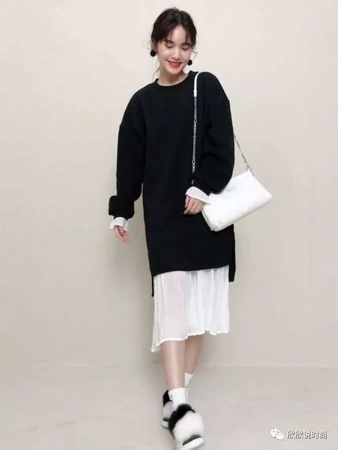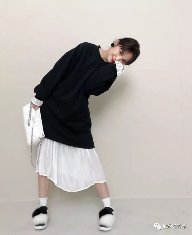 近期杨丞琳的造型也非常的可爱,先看这张图中她穿起一款黑色的卫衣服饰,版型给人看起来非常的大气高级,内再搭配着一件白色的雪纺服饰,这样的黑白搭配也是再经典不过的,裙摆花边的设计也将她尽显出俏皮可爱感。