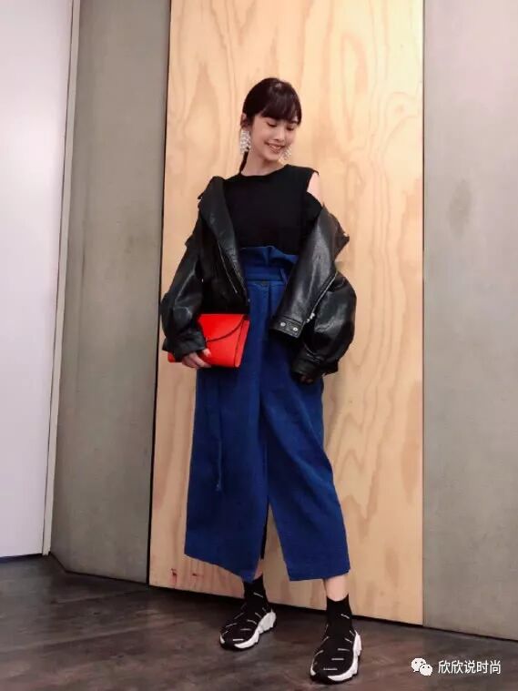 还有这款服饰也将她显得更加的个性时髦,上身穿着一件黑色的服饰,外再搭配着一件皮质的外套衣,整体给人看起来非常的有范,而下身再搭配着一条深蓝色的裙装,也为她这一身增添色彩,手里再拿着一款红色的包包也为她整身显得更加的亮眼迷人,脚上再踩着一双鞋子显得活力感十足,不知道大家看完杨丞琳的这些造型后又有什么观点呢?欢迎大家留言一起讨论讨论哦~