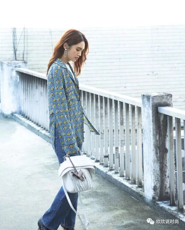 让我们再看下杨丞琳的其他造型,图中她穿着一款印花衬衫行走起来的气质非常的强大,再搭配一条深蓝色的牛仔裤,整体给人看起来非常的有范,整体尽显出摩登范十足。那个白色的包包更是一个大亮点,流苏的设计也为她这一身显得更加的高级。