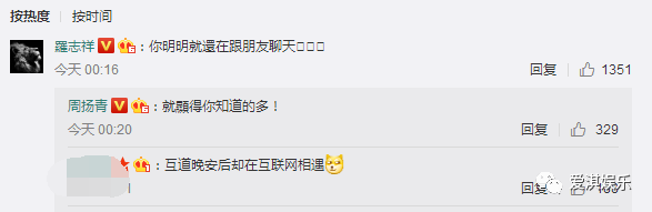 男友罗志祥也出现在评论中,罗志祥吃醋评论“你明明就还在和朋友聊天”。周扬青回怼“就显得你知道的多!”有网友调侃,互道晚安后却在互联网相遇哈哈哈: