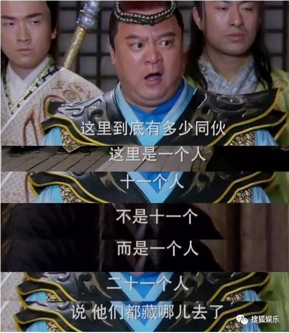《隋唐英雄5》则是靠谐音台词不停重复,成功注水。“这里有多少同伙?”“这里是一个人。”“十一个人?”“不是十一个人,而是一个人。 ”“二十一个人?说!他们都藏哪儿去了”“你听错了,其实一个人。 ”“七十一个人,你当我傻呀,这么小的地方! ”“傻瓜,你又听错了,这里就是一个人。”“九十一个人!”“二百五,是一个人。 ”“二百五十一个人,你真以为我傻呀 ”。