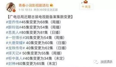 观众把剧情拖沓的原因归咎于集数,也不是没有道理。一方面正是随着电视剧集数的越来越长,有关剧情拖沓的质疑声才越来越多;另一方面,不同于从前电视剧都是直接定好多少集,近几年时兴改剧集。比如《楚乔传》从45集改为68集,《醉玲珑》从45集改为54集,《一世情长》从35集改为54集,《大唐荣耀》从40集改为62集,《择天记》从50集改为55集,《封神》从60集改为65集等。而像《漂亮的李慧珍》这样的翻拍剧,故事不变,集数却拉长一倍多的情况,也比比也是。