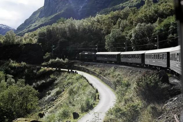 挪威拍摄的第二站是尤坎。因为地处地势崎岖的峡谷之中,冬天太阳高度较低,这里从每年的九月到次年二月都照不到阳光。早在100年前,当地人就修建了缆车,方便居民到山顶上去晒太阳。