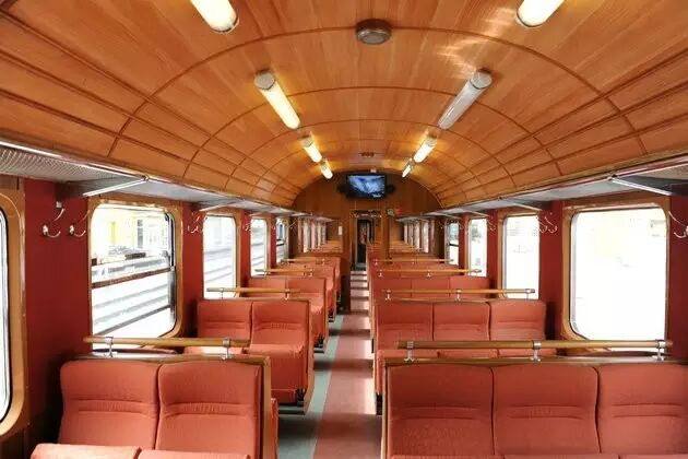 火车会沿着陡峭的山间铁路,穿行于山峦之间,木质的车厢和桔黄色的座位有一种温馨的感觉。
