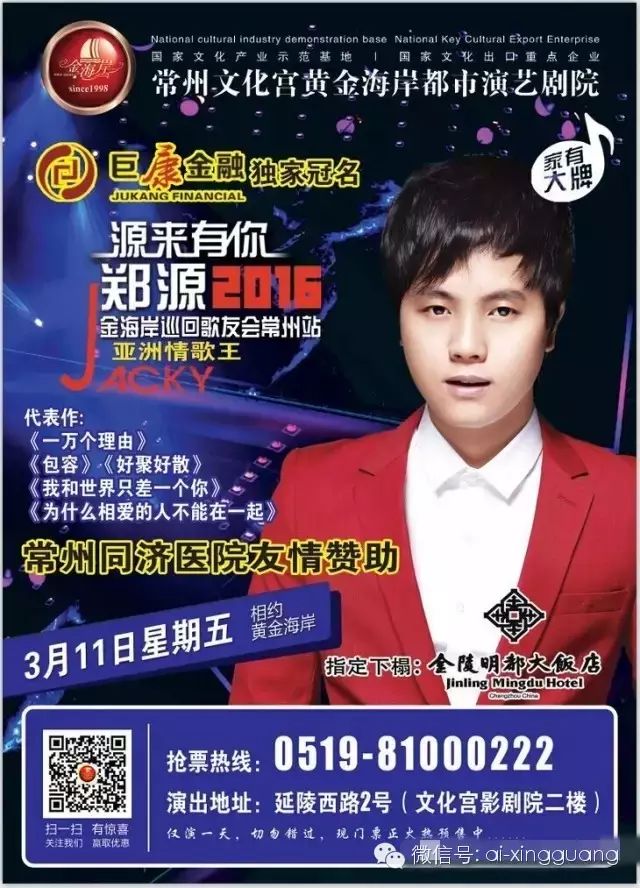 "情歌王子"郑源歌迷见面会今晚常州华丽开唱 爱星光 内地男星 2016-03-11 15:14:00 468 创作不易,用心坚持,欢迎请BaGua喝几杯爱心咖啡!打赏并支持本文 打赏并删除本文 亚洲情歌王子郑源巡回歌友会3月11日常州、3月12日苏州华丽开唱郑源将携代表作《一万个理由》《包容》《我和世界只差一个你》等多首经典歌曲与歌迷见面“源”来是你,为爱而来!郑源与你不见不散! 创作不易,用心坚持,欢迎请BaGua喝几杯爱心咖啡!打赏并支持本文 打赏并删除本文 感谢您的支持鼓励,我会继续努力的!文章地址:用户邮箱:打赏金额:USDT 请输入数字点击”去打赏“,即可进行打赏支持本文章哦 About the Author 爱星光 功能介绍:明星都在爱星光(aixingguang.com) Related Posts 汪峰为什么不让旭日阳刚唱他的歌?王旭说出了其中的心酸 2018-06-19 11:41:12 李荣浩 信 吴莫愁 文松 主持人华少 紫檀 巨星演唱会嗨炸天 2017-12-18 10:08:57 赞!旭日阳刚王旭 为中国农民代言!为农民呐喊! 发新单曲《中国农民》 2017-11-27 11:31:16 朱丹产后首晒女儿侧面照 低头亲吻满眼都是爱 2017-10-17 10:41:45 朱丹好强悍 孕肚这么大了还到处跑 2017-09-14 10:38:42 发表评论