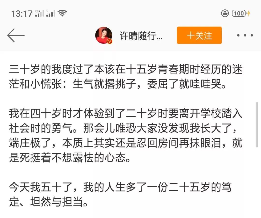 那篇随笔不短,但具体写什么没太多人真的放在心里,让大家引起热议的是:许晴竟然50岁了?!