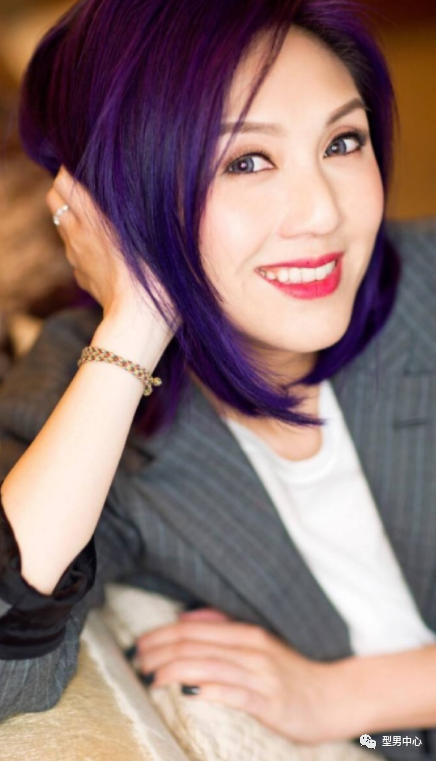 帅气利落的紫色短发,搭配一件黑色的蛋糕裙,