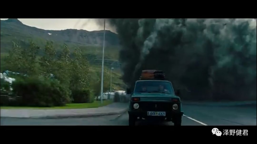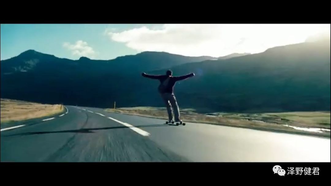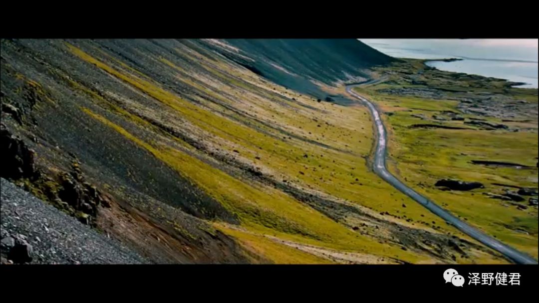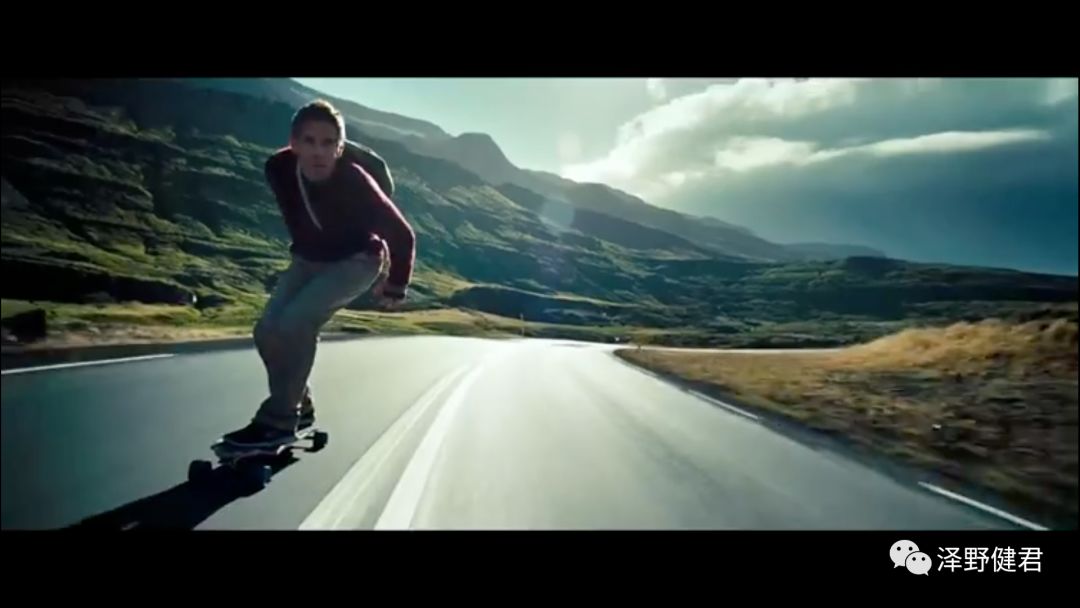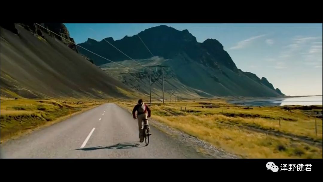 有一个场景是华特用一个会拉伸的玩具在冰岛和当地小孩换了一块雷神的长板,然后开始了他在公路上的滑(装)行(逼)之旅。