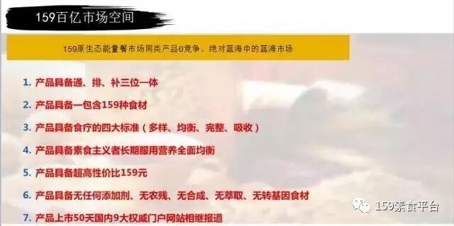159不一定是最赚钱的事业,但一定是最有福报的事业!所以我亲爱的家人们,我们不单单是透过 159 素食全餐这款产品赚取财富,我们更多的是透过这款产品去开启更多人的慧命!我们要想实现但求天下无疾苦的伟大使命,只有复制出更多的导师来,每个导师都真正的用爱、用自己真实的感受来影响周围更多的人走进159。我相信所有来到我们这个群的家人,我们都是绝对正能量的家人才能相聚在一起,所以我也呼吁我们群内所有的家人,我知道你现在也在聆听,我知道你现在就在这里!所以我也真正的感召你,我们一起参与进来吧,让我们一起在最快时间成为最优秀的生命导师,帮助更多人获得健康走向幸福的生活!