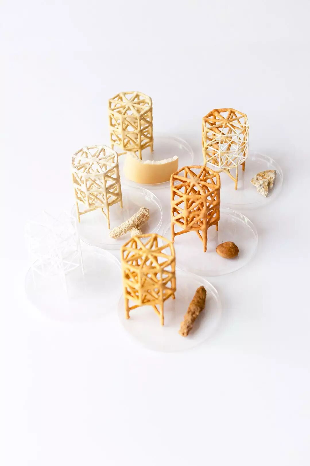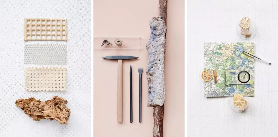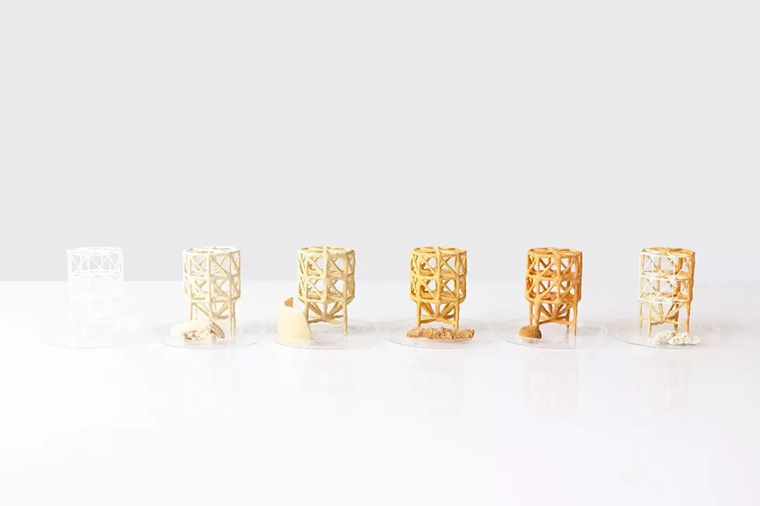 受到钟乳石形成原理的启发,这些石头艺术品都依附固定结构一滴一滴生长起来。我们将3D打印出来的轻巧构架放入精选的矿物质温泉中石化若个