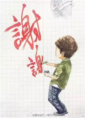 并当场创作了一幅写着”谢谢“两个字的巨幅涂鸦