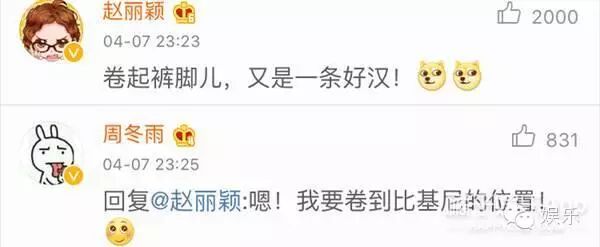 哎呀,冬雨妹子真是实力自黑啊,猫姐本想发点什么鼓励一下冬雨,结果在点开评论的时候,竟然发现了你们脑公赵丽颖↓