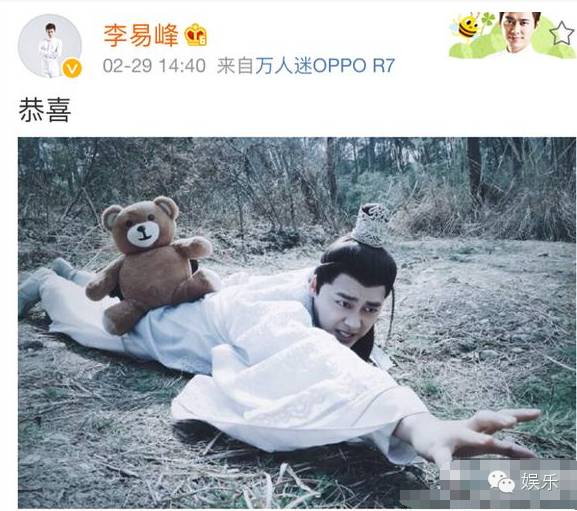 大家都知道峰峰很长时间才发一次微博,小李子拿到奥斯卡的时候,炸出来了李易峰。