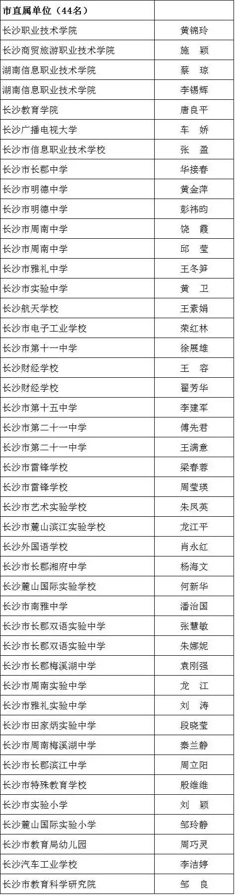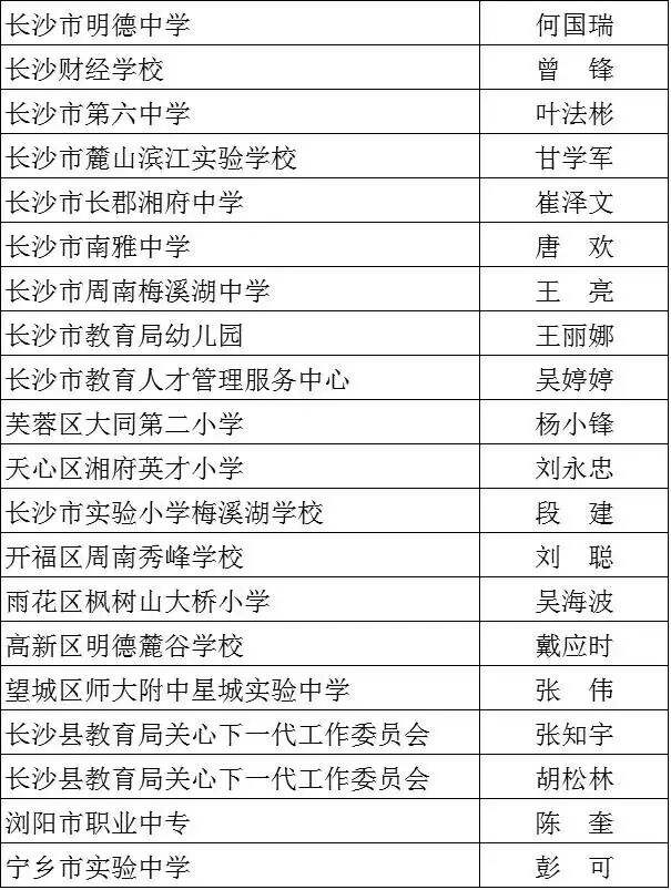 谢军等40位同志“长沙市优秀教育工作者”称号、
