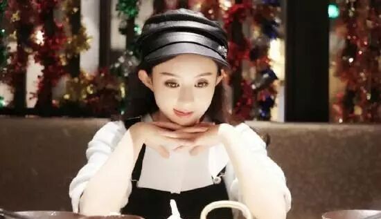 照片中,赵丽颖戴着黑色的短檐帽,穿白衬衫配黑色背带裙,青春活泼,大大的眼睛和圆圆的苹果脸特别可爱。后面的两张照片揭晓了她吃饭的对象--毛茸茸的爱犬毛球。
