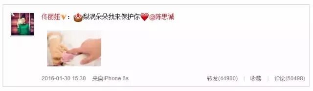 她在微博中表示:“梨涡朵朵我来保护你”。祝福美丽善良的丫丫!