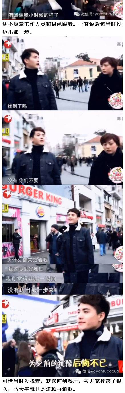 马天宇请示过工作人员:“我可以用自己的钱吗?”(因为综艺设定是穷游,大家有预算,不能使用自己的钱。)然后给小女孩儿50里拉。