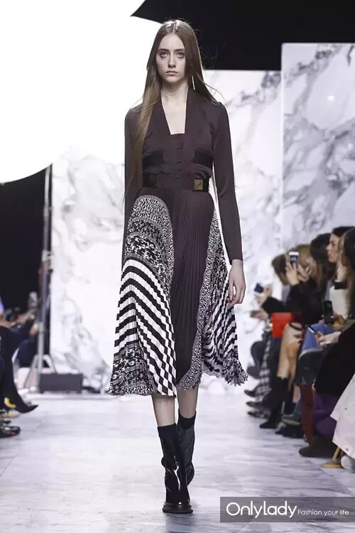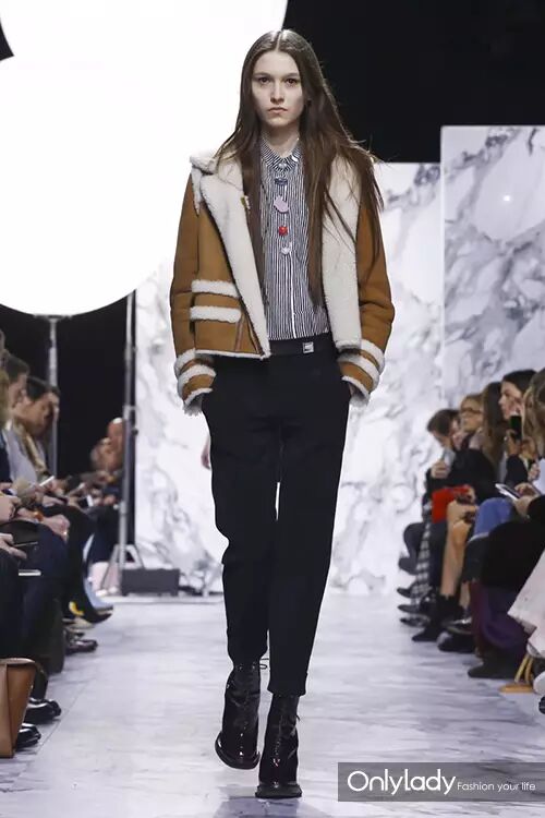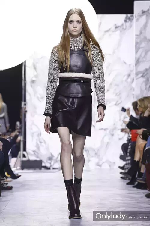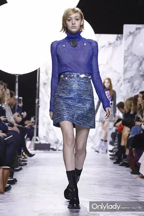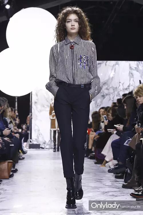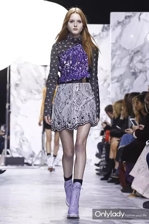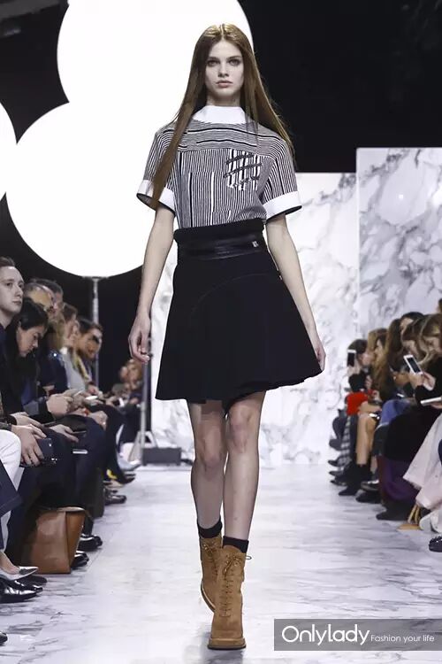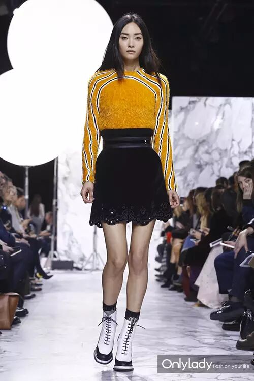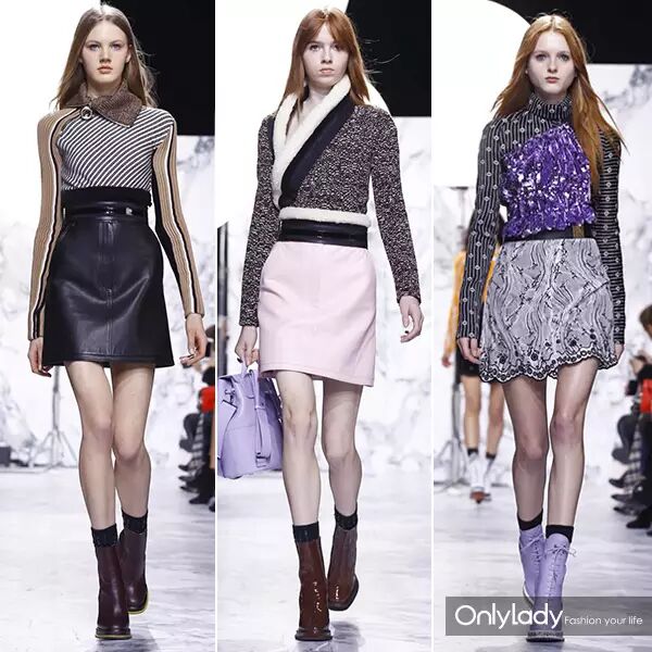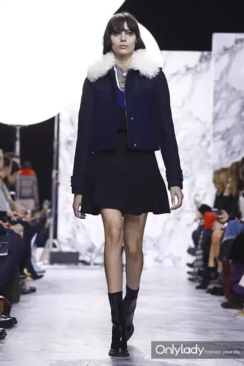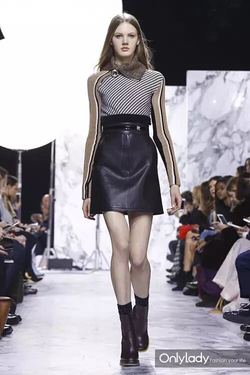 Carven的2016秋冬系列在款式上很基本—高腰小A字裙、贴身上衣、条纹衬衫.....但细节十分精彩,不同材质的拼接、不同走向条纹的对撞、充满现代感的印花、皮草的装点.....让人耳目一新,塑造一个个摩登俏丽的都市少女形象。