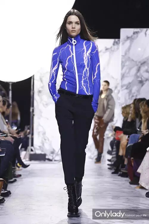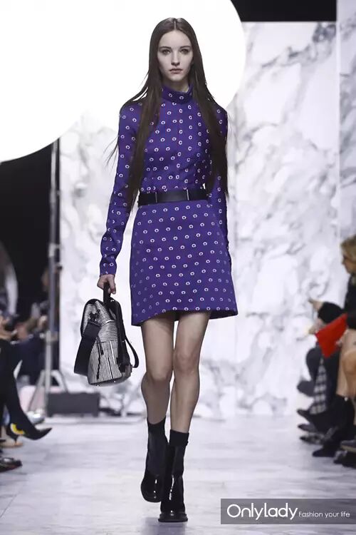 本季另一个新颖的看点就是印花,Carven的印花可不是普通的碎花、动物,雷电、上帝之手、条纹上串联着小圆圈,还有不同形状的条纹拼接,摩登炫酷。