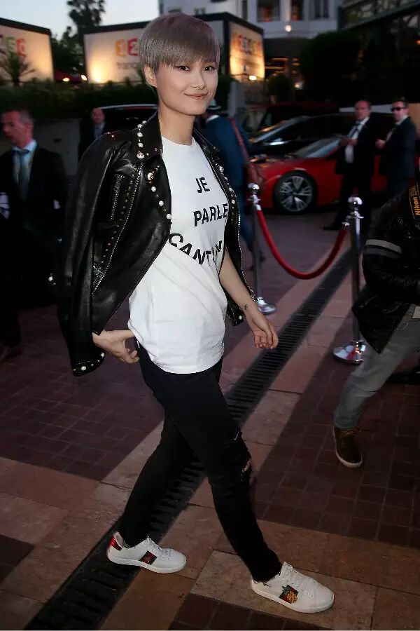 李宇春在第69届戛纳电影节上也穿着Gucci sneakers。