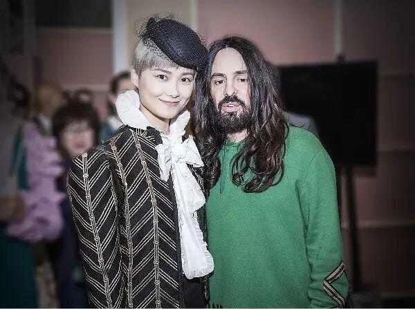 李宇春在Gucci 2017早春度假系列大秀的秀后派对上与创意总监Alessandro Michele合影。