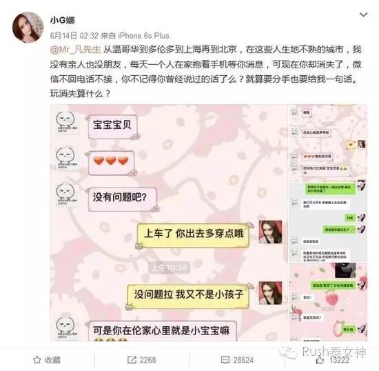 而且小G娜一方的反应来看,显然是正处于恋爱之中被冷处理的懵逼脸。如果双方都明白这不属于一段恋爱关系,那么在发生关系之前,为了事后免去不必要的口舌和麻烦就会明确各自角色和这段关系。显然小G娜没把对方当炮友,所以反应激烈极端。当然也不排除小G娜自导自演的可能,不过吴亦凡哄“炮友”真是卖力,哄得就跟自家女朋友似的。以至于约炮结束,炮友当真。