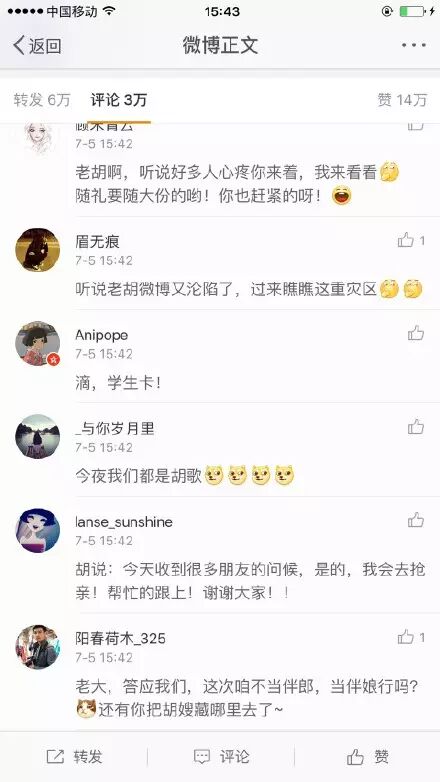 所以老干部一发出将要结婚的消息,胡歌微博立马被攻陷了...