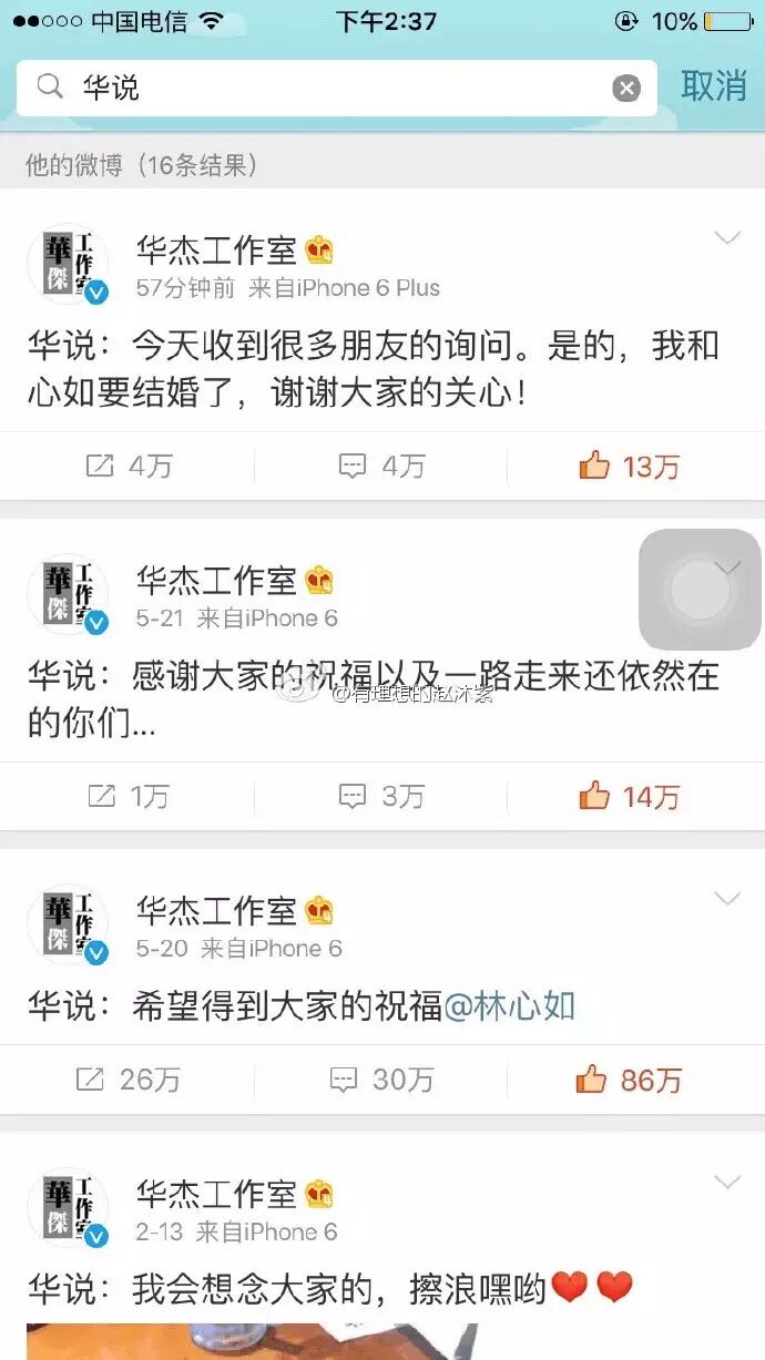 昨天霍建华林心如两人的工作室双双宣布两人准备结婚的消息,再次引发网络狂欢。