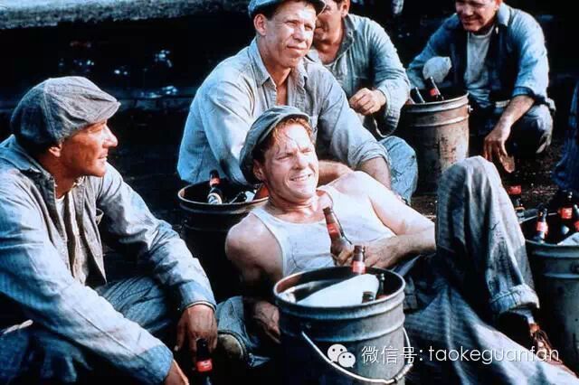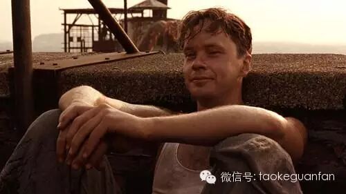 “于是1950年的一个春天,我们这一伙负责翻修屋顶的囚犯们,在工作结束前一天的上午十点,排排坐在屋顶上喝着啤酒,啤酒是由肖申克监狱有史以来最严苛 的狱卒所供应的斯特罗啤酒(Stroh's beer),尽管是温的,不过仍然是我这辈子喝过的滋味最棒的啤酒。我们坐在那儿喝啤酒,感觉阳光暖烘烘地洒在肩膀上,虽然哈德利站在旁边,脸上带着半轻 蔑、半打趣的神情,好像在看猩猩喝啤酒似的,却都不能破坏大伙的兴致。我们喝了二十分钟,这二十分钟让我们感到自己又像个自由人,好像在自家屋顶上铺沥 青、喝啤酒。只有安迪没喝,他蹲坐在阴凉的地方,双手搁在膝盖间摇晃,微笑着看着我们。你可以说他想拍狱警马屁,或是想博取犯人的友谊,但我认为他只想重 温自由,哪怕只有一刹那。”
