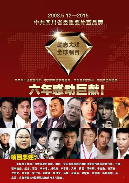 30集大型青春励志电视连续剧《梦想》(又名:《四川依然美丽》),由省委外宣办指导,四川依然美丽公益活动组委会和成都环球博纳文化传媒有限公司等单位联合制作,拟在全国播出。