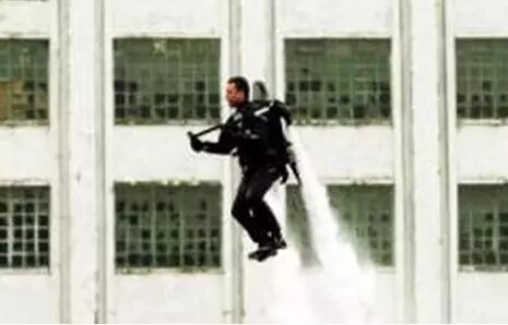 其实现实中的 喷射悬浮飞行器,即喷水飞行背包,是2009年2月12日德国上市一款娱乐产品,这种飞行器能以向下喷射两道高压水柱方式把使用者推离地面9米,使用者还能在飞行过程中急转弯或盘旋,最快时速为100公里,续航1个小时。推出这款产品的企业说,背包可用于水上娱乐,不适合充当交通工具。