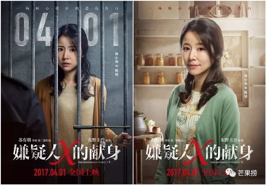 电影《嫌疑人x的献身》继公布王凯、张鲁一 双男主阵容后,终于公布影片女主角林心如 。新曝光的两张人物海报以截然不同的氛围展现出女主“陈婧”这一角色的复杂性,作为导演苏有朋的“革命战友”,林心如大婚后即刻进组,几乎全程素颜出镜;影片将于4月1日公映。