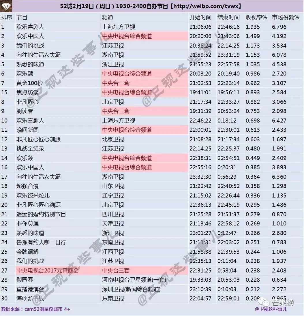 ➤ 湖南卫视金鹰独播剧场编排:3月2日孙怡/邓伦《因为遇见你》接档、3月29日陆毅《人民的名义》接档。