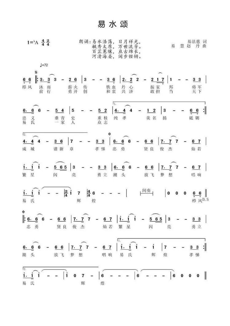 《易水颂》由易法慈(宣恩)作词、著名歌手易慧(慈利)谱曲并免费演唱,易善慈等132位宗亲提供了赞助。