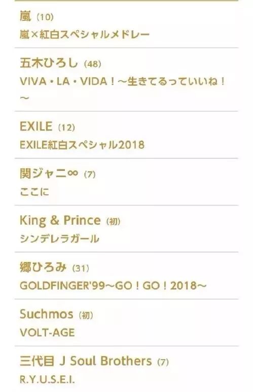 这么一算,红组光是杰尼斯就一下子上了五个!杰尼斯真的厉害。