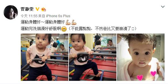贾静雯也在微博上晒过和咘咘在美吉姆上课的照片