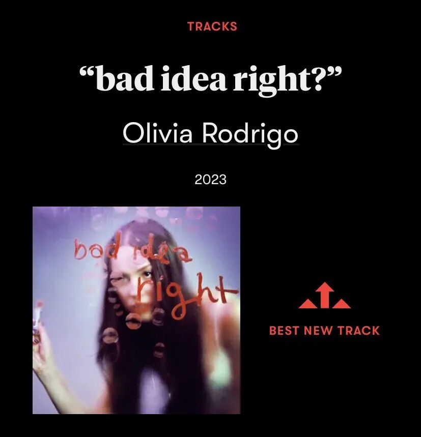单曲《bad idea right?》又一次获得了 Pitchfork 的 BEST NEW TRACK。