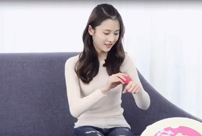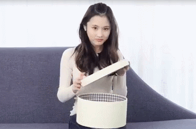 接过神奇的芭多拉美妆盒,慧雯还不忘拿着盖子卖个萌,是感受到神秘的美妆力量了吗?