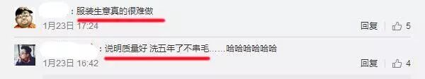 有粉丝觉得五年没换的羽绒服说明“服装生意真的不好做”,说明“这件衣服质量真的很好”