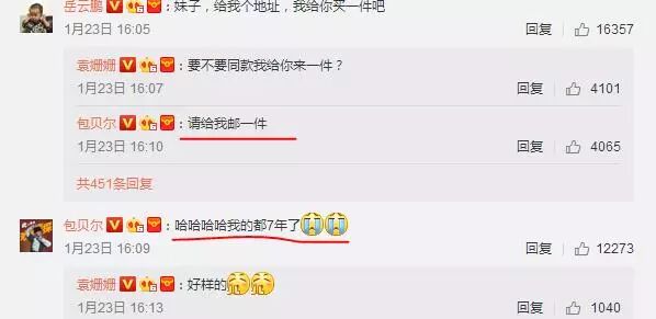 就连我们的小岳岳都看不下去了,留言让袁姗姗给个地址,他给寄件新衣服去