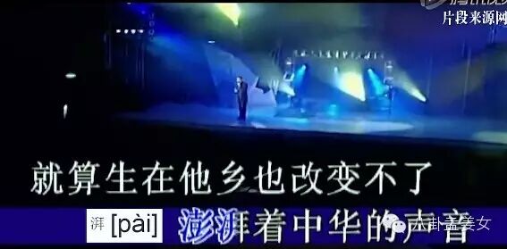 张明敏《我的中国心》“澎湃”着许多中国人的心,但湃字发音错成了拜(bài),正确的是pài,大概直接念半边所以错了。